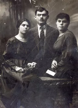 This is my mother Dina Ostrovskaya (first from left), her younger brother Yuda Mogilevski and her younger sister Chaya Ioshpa. This photo was taken in Kremenchug in 1917.