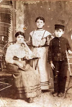 This is my mother Dina Ostrovskaya (in the center), her sister Chaya Yoshpa and her brother Yuda Mogilevski. This photo was taken in Kremenchug in the 1910s. Yuda is wearing a school uniform. This form he may have borrowed to get photographed, because Yuda never studied.