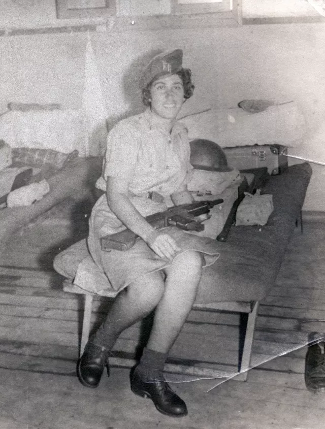 This is a photo of Malka Benjosef, nee Aroyo, who is the daughter of my brother Marco Aroyo. On the photo she is a soldier in the Israeli Army. The photo was taken in 1961.
