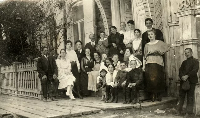 Liya, mother's sister, is standing on the right. In the back row in a black dress you can see Grandma Shosya Godberg, the mother of the Goldberg brothers. I don’t know the others. They must be neighbors and friends, probably with servants. The photo was taken in 1922.