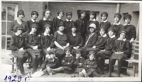 A photo from the orphanage in Sofia. It was taken on 1st March 1929. There is neither a stamp on the back of the photo, nor any other inscription. I am the fourth in the last row from right to left. Our teachers are also in the picture – the principal Mrs Basan, on the left is Mrs. Douda – the housekeeper and Miss Roza who was a tutor. In the top row is the cook whose name I can’t remember and I can’t remember the names of my classmates. But we were good friends.