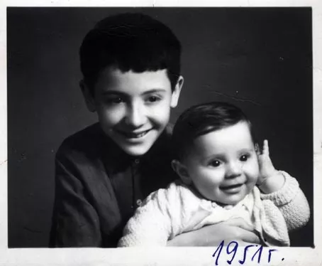 My two sons Sami [Samuil] and Ouri [Solomon]. Ouri is only 9 months old and Sami is 11 years old. The photo was taken in 1951 in Plovdiv. There is neither a stamp on the back of the photo, nor any other inscription.