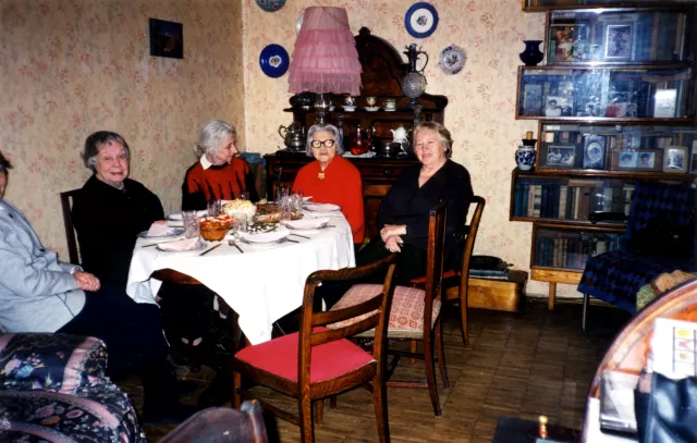 She is the second from right. I am the first one from right - sitting. A former colleague of her husband is on her left. On the very left is our acquaintance Liya Gruzdenskaya.