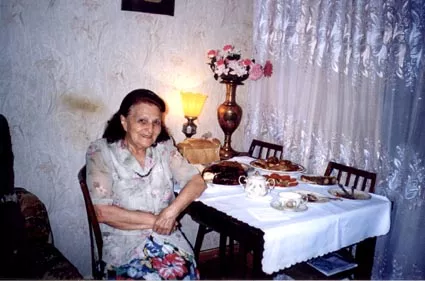 This is me, Maria Koblik-Zeltser, in my house in Kishinev at a festive table in 2004 on the occasion of my friend's visit.
