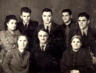 From left to right sitting: my mother Soibel Kozhushnyan, my father Yankel Kozhushnyan and mother-in-law Esther Koblik-Zeltser. Standing from left to right: I, my husband Froim Koblik-Zeltser and his brothers Zeilik, Gersh and Yankel. This picture was taken in Kishinev in 1948.