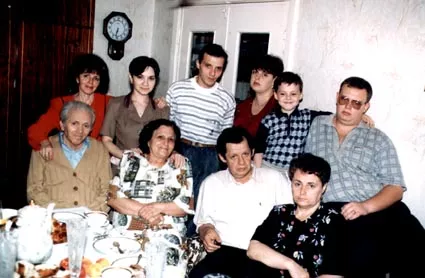 This family photograph was taken before my daughter left for the USA. From left to right sitting: my husband Froim, I, Maria Koblik-Zeltser, my son’s parents-in-law Arkadiy and Roza Fridrich. Standing from left to right: my daughter Anna, her best friend Marina is next to her, my son Vladimir, his wife Svetlana, my grandson Maxim, Marina’s husband Valeriy. The picture was taken in Kishinev in 2001.