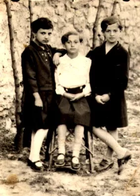 This is me, on the left, with my friends Feigele and Leigele in the yard of our house in Rezina. The picture was taken in 1934 on the day of the graduation from the elementary school.