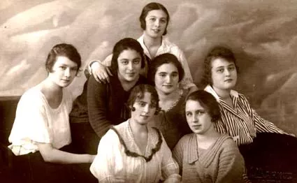 These are students of the Dentist Faculty of the Tartu University where I studied. We were photographed after an exam. I remember their faces, but I can't remember the names. We did not meet after graduation, and I have no information about them. I think, the 2nd girl on the left in the 2nd row was called Sarah. She was from Tartu. I don't remember the others. I am sitting first from the right in the 2nd row wearing a striped blouse. This photo was taken in Tartu in 1923.