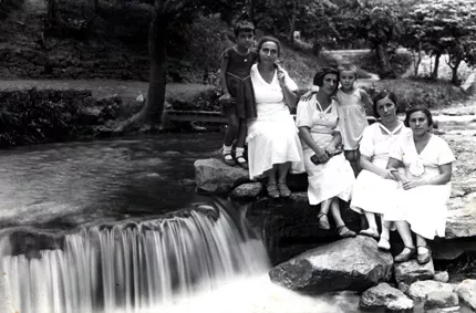 From right to left: my aunt, my mother`s sister Anna Fokina (nee Buch), my aunt Katia Buch, my mother Taiba Ogushevich, I, Maria Zabozlaeva, and my mother`s acquaintance whose name I don`t remember. This photograph was taken in Kislovodsk in summer 1935 when we went on vacation before my going to school.