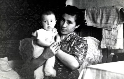 I, Maria Zabozlaeva and my son Fyodor Zabozlaev. This photo was taken by my husband Georgi when our son turned 6 months in July 1957.