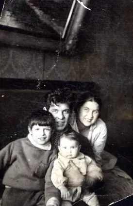 The family of my husband Georgi Zabozlaev: upper row: my husband`s father Fyodor Zabozlaev, his mother Evgenia Zabozlaeva (nee Rys), lower row: my husband Georgi and on the right is my husband`s sister Olga. This photo was taken in Leningrad on 12.11.1939 when Olga turned 9 months.