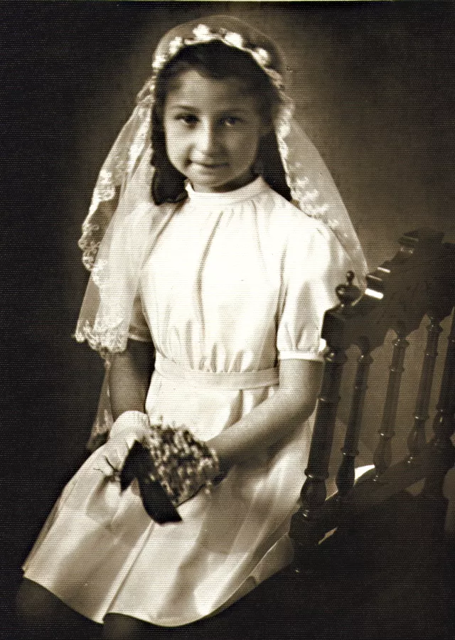This is my daughter Marika's confirmation picture. This was in the church in Matyasfold, and it must have been in 1943, because, first confirmation is at the age of ten, I think. There was no big celebration. The children from her class, who were the same age as her, were there.