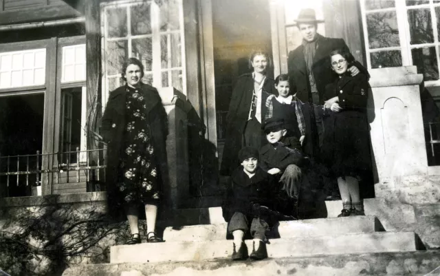 The picture was taken at the end of 1930 in front of the sanatorium on Fruska Gora. Standing in the front row is my cousin Eva Bohm, next to the man with the hat. My cousin Eva was born in 1930 in Subotica. She was very skinny and sick as a child. Sometime between 1938 and 1939 she went for treatment at the sanitarium on Fruska Gora, a mountain close to Novi Sad. She was sick with tuberculosis. Unfortunately in 1944 she was taken together with her younger sister Ana and her mother Klara to Auschwitz where they were killed. Her father Eugen Bohm was in the Mauthausen camp, he survived the war.