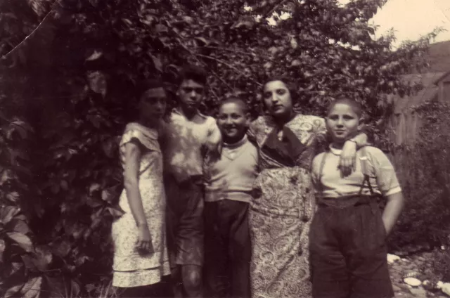 This is I, Marim Haller, the second from the right, with Iulius Klein's sons - to my left and to my right, I no longer remember who the other 2 children were. Beno Klein is on my right. I visited them in Targu Ocna, and we took our picture together. The date on the back of the photograph reads 26th August 1937.