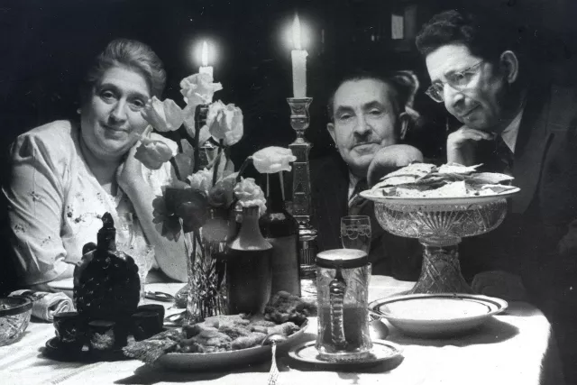 This photo was taken in 1950s in Leningrad and shows my parents and one of their friends during Seder.