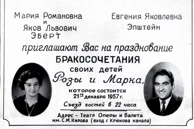 We invited 102 guests. An orchestra played, several people shot films. We had a good time. I still keep invitation cards. The next day at home I gathered my colleagues from the Palace of Pioneers, and my wife invited her colleagues from her school.