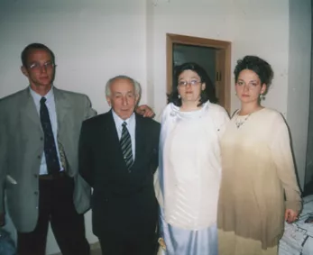 This is my grandchildren, Victor's kids. From left to right: Dmitriy Kabakov, I, Sofia Kogan and Innesa Kabakova. The picture was made in Haifa in 2003.
