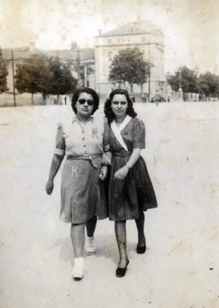 This is my friend Reni from Kyustendil and I. This picture was taken during the internment in Kuistendil in 1943-1944. Reni is still living in Israel, but I don't know what happened to her after she left for Israel in 1949. I got to know her in Kyustendil, as we used to be neighbors there. She was also interned from Sofia. I don't know her surname.