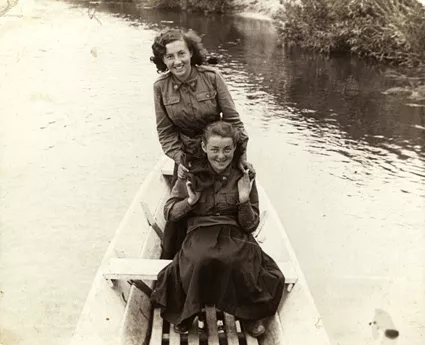 Matylda Wyszynska with her friend Mela Miezes at summer camp in Spala