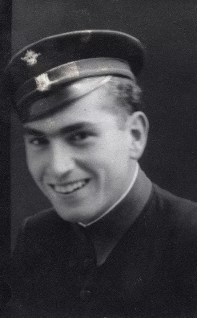 This is my future husband Mayer Rafael Alhalel as a student. The photo was made in Vidin [port city on the right bank of the Danube in Bulgaria, 220 km. away from Sofia] in the distant 1938. On this photo he is studying in the third junior high-school grade, which is equivalent to present-day eighth grade (i.e., he has passed four primary school forms and three junior high school grades). At the time the photo was made he was 15 years old. He had already been transferred from the Jewish primary school, which had only four grades and he was studying in the boys' high school in Vidin 'Tsar Simeon Veliki'. I was studying in the girls' high school in Vidin, and although we were neighbors and had studied in the same Jewish school, we did not know each other well. At that time there were not any anti-Semitic reactions in Vidin yet, although the Law for Protection of the Nation [A comprehensive anti-Jewish legislation in Bulgaria was introduced after the outbreak of World War II. The 'Law for the Protection of the Nation' was officially promulgated in January 1941] was about to be adopted in Bulgaria. I remember that the political climate in 1938 was still calm.