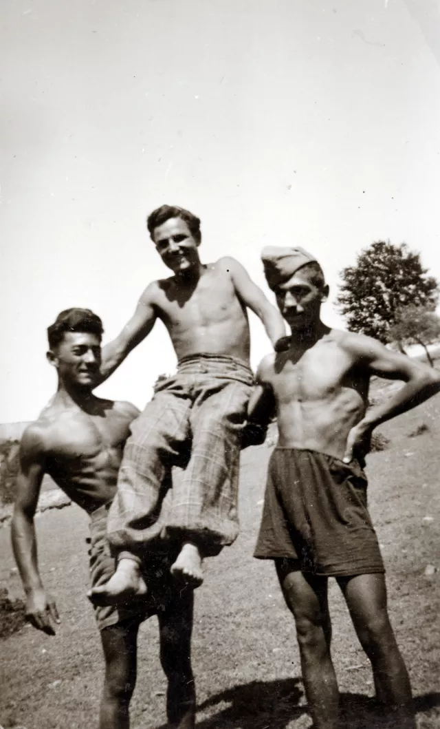 This is a picture form the labour camp in South Bulgaria where my husband Mois Asael was sent. The picture was taken in the 1940s. He is on the left in the photo.