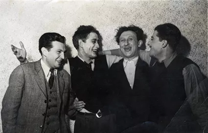 These are members of the satire theater ‘Starshel’ ['Hornet']: (from left to right) Zahari Petrov, I, Radoi Ralin and Neicho Popov (late actor, very famous in Bulgaria). The picture was taken in Sofia, 1953.