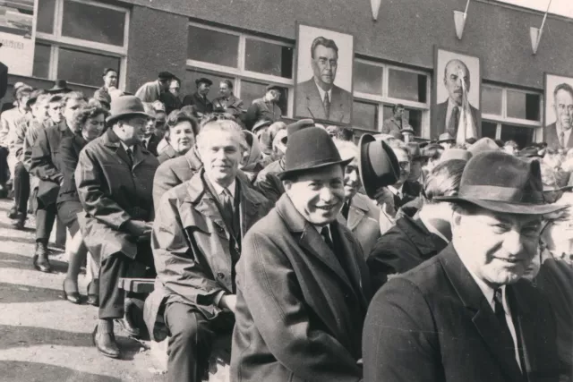 The photograph shows a celebration. Every year in Mukachevo there was a celebration for the construction and development of the town. The celebrations were held in August in an amphitheater in Mukachevo. The photo was probably taken in the the 1970's. I'm in the third row, right at the edge.
