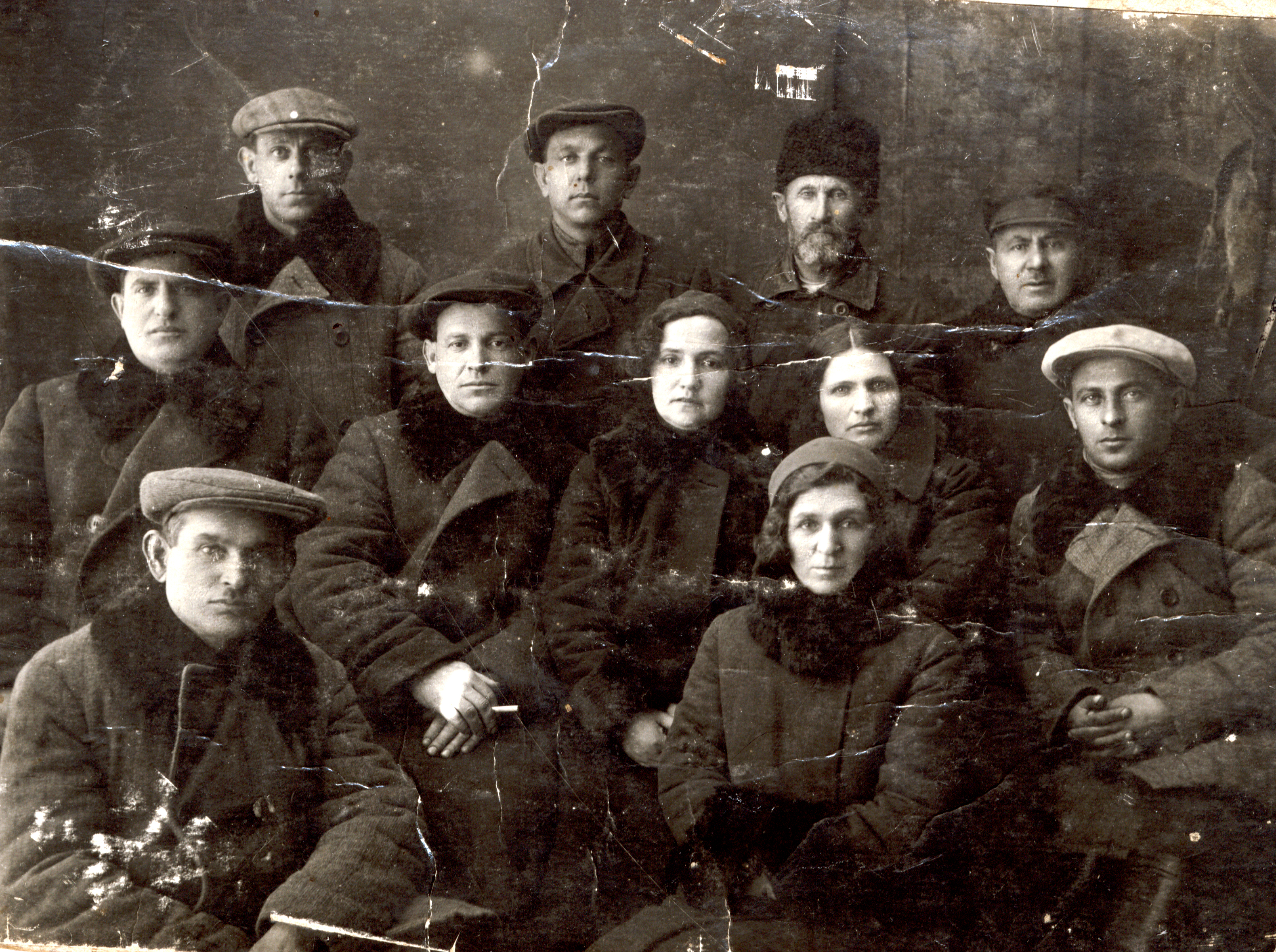 An artel of Jewish tailors in Korsoun, 1926. In the center is my mother-in-law Makhlya.