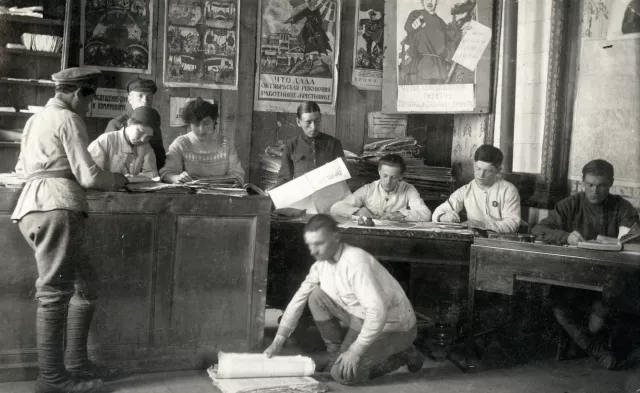 Mia Ulman's father Yakov Plotkin at the Political Department of the Red Army