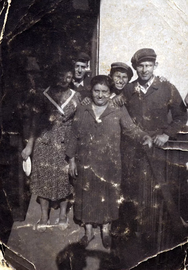 This is the photo of me and my family. In center is my mother. Between my mother and me is my brother Wilhelm. The photo was taken in 1940 in Lwow. I don’t remember exactly who took it.