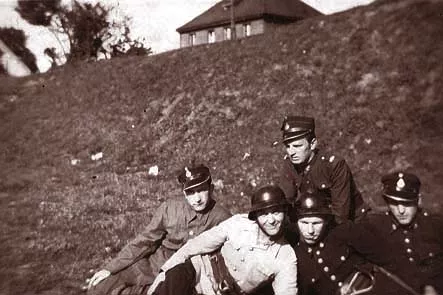 This photo was taken when I was working in ELPO factory in Legnica. This was a textile factory. I worked there as a locksmith, but one year I was there in a fire brigade. Those people are my fellows from the fire brigade, one of them was a an anti-Semite as I remember. I don’t remember his name neither the ones of the others on the photo.