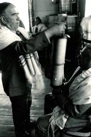 I always go to shul on Saturday, since if one or two people are missing, the service can't take place. I go, and I sit; it's not so tiring for me - just a little if I stand for half an hour at a time. Sometimes we have a memorial prayer for some deceased friend or relative. We recite a special Kaddish then - either I recite it, or the chairman does. The older folks who didn't emigrate attend pretty regularly. Every Saturday we have a half-liter of vodka, and sometimes someone smuggles in a bottle of their own, so we can always have a drink. And the little meal doesn't cost anything - they always prepare something for Saturday. For example a kosher chicken cutlet, potatoes with some gravy, and sweet tea with lemon - no wonder people attend! But not too many people - sometimes there's barely ten. It's a change of pace, anyway; with the meal and all, it lasts a couple of hours. We talk - we can't speak Yiddish, though, since not everyone there understands it. So we talk in Polish, and if I need to discuss something with the chairman, then we speak Yiddish.