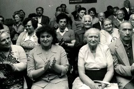 This photo was taken in the Jewish Culture Society club in Legnica. It was during a concert. I don’t remember who was singing, but I remember I liked it a lot. You can see me clapping, I’m the one sitting in the first row, first from right. I always like to attend those meeting, especially when there are guests from Warsaw.