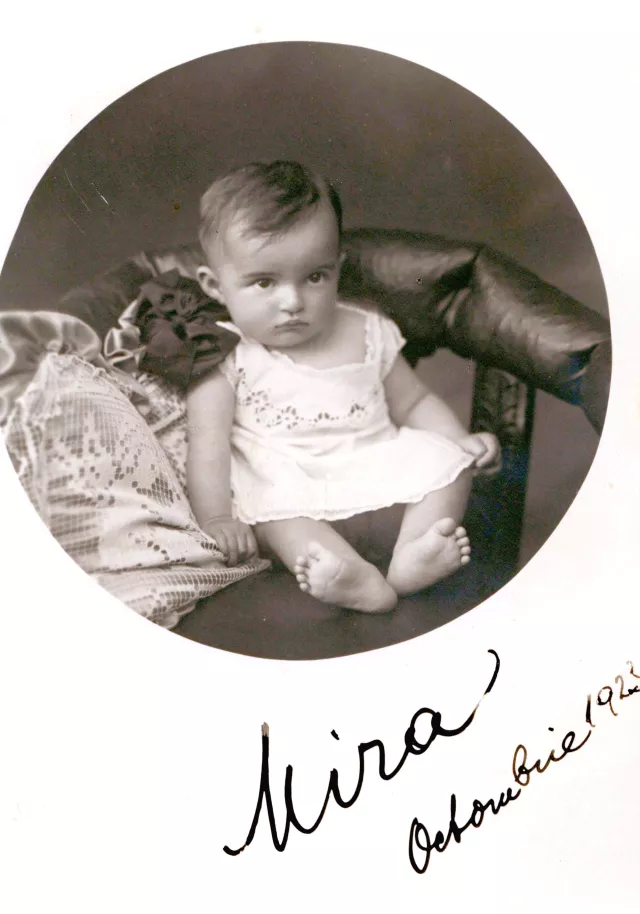 She was a quiet child and a pupil loved and respected by her schoolmates. She had the misfortune of being 'forced' to take piano lessons at the same time with me; the main reason why my parents did that was not because they wanted to secure her musical education, but because they didn't want to give her an inferiority complex. It took seven years of nightmare until our dear parents could be persuaded that Mira and music had nothing in common!