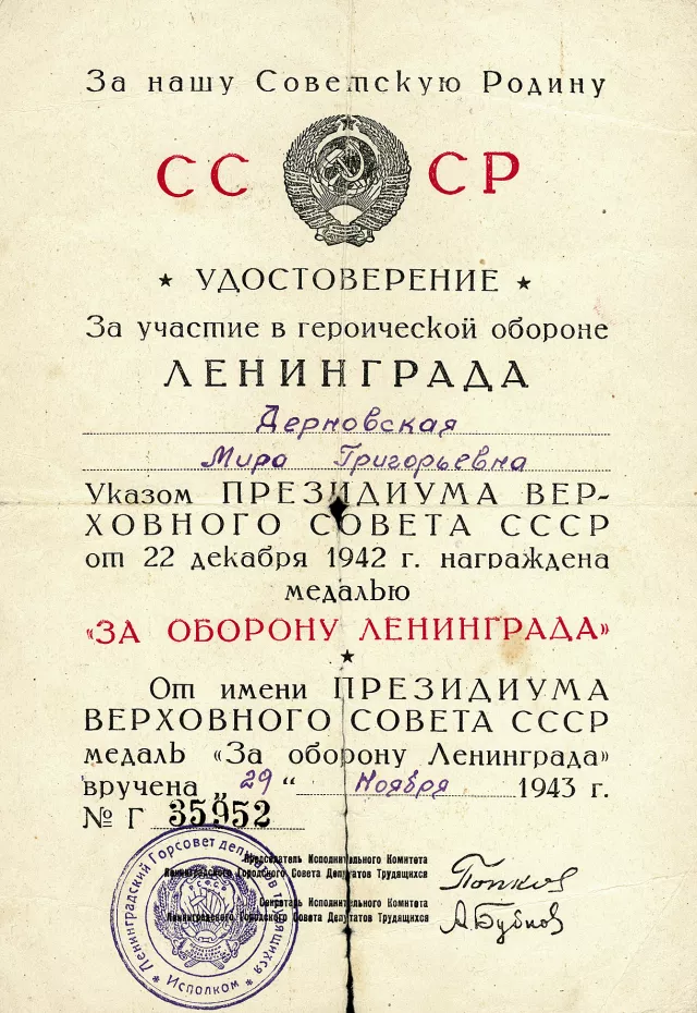 This is the award ‘For the Defense of Leningrad’, which I received as a schoolgirl in 1943.