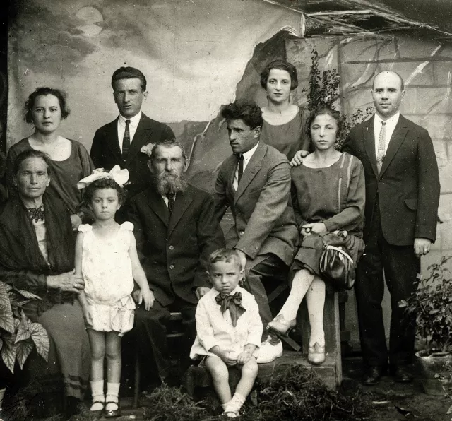 Standing in the third row from right to left: Milya’s husband Grigory, father's sister Lea, unmarried at that time; my father Grigory and my mother Haya.