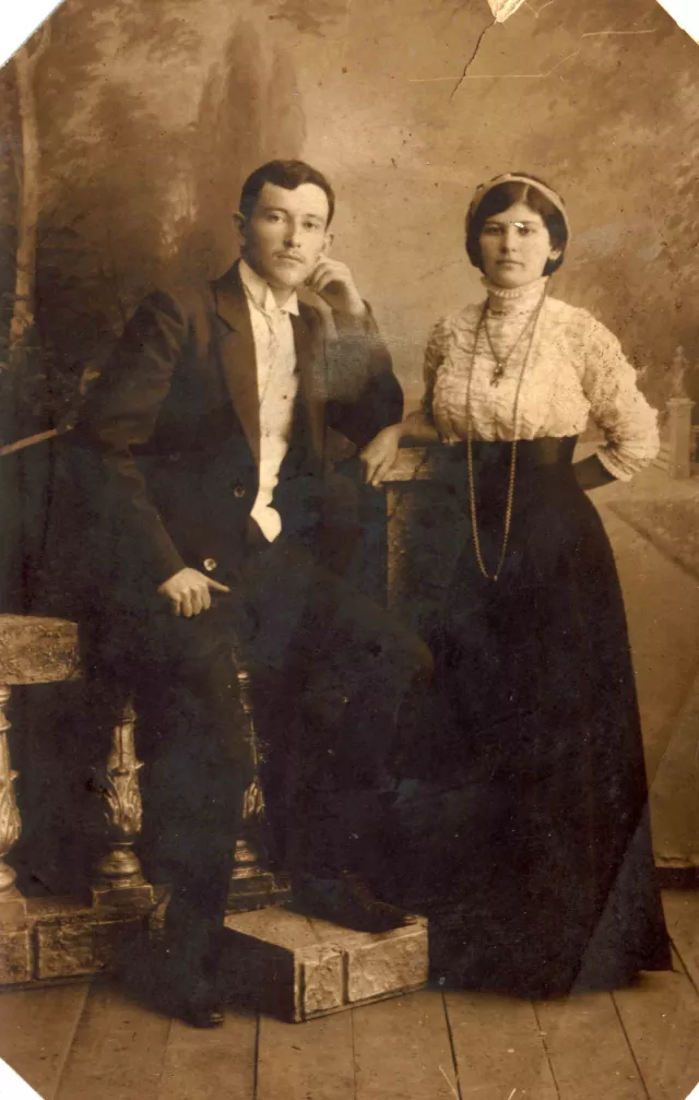 Parents of my husband: Nus Alterovich Sapozhnikov and his wife Freida Borukhovna. The photo was made in Lipovets in 1914.