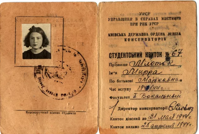 Mira Mlotok’s student ticket of the Kiev Conservatory