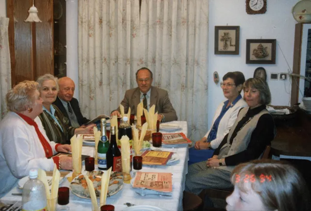 This is seder in the home of Tali, a cousin of mine. In the center in the back of the photo is my brother Haim who is reading the prayer for Pesach. To the left are me and Juliet, to the right is Haim's wife - Roza and their daughter Rivka.