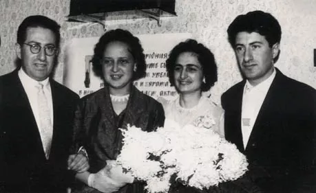 I met my wife in the Vitosha Mountain. I am a tourist and I still go to the mountain. Once my chief in 'Himmetalurgproekt', Marin, his wife Atanaska and I decided to go to Vitosha. It was February 1958 and we went skiing. There we caught up with a group of young people and together with them went to the 'Fonfon' mountain hostel. I got acquainted with my future wife, the next day we went skiing together and then we started on our way back together with Milka, a friend of my wife. I taught them how to ski and helped them, but I fell down and sprained my ankle. When I got home, my leg was swollen. And Nina Perets, my future wife, told Milka, 'Let's go and see him.' Nina is a Jew and Milka - a Bulgarian. But Milka was too shy, so Nina came alone to see me. Then we were living in a rented flat in the Banishora residential district in Sofia. In 1956 my parents and I changed the rented flat in Ruse to one in Sofia. That is how our friendship started. Nina and I married on the same day with my brother - 12th December 1959. At that time my wife's aunt and uncle from Moscow were visiting her. They were political emigrants. Their names were Solomon and Rebeka Goldstein. Rebeka is a sister of Julieta, Nina's mother. The Goldstein family has lived in Moscow since 1918. They also spent some time in Switzerland where they met Lenin, who invited them to the USSR. Julieta and Josef Perets lived in Sofia. They were interned to Montana. That is why, at first we lived for one month at my father's place (my mother had already passed away) - my father was in one of the rooms, my brother and his wife, Yanka, in the other and Nina and I - in the kitchen. When Nina's relatives returned to Moscow we went to live at Nina's parents - we lived in one of the rooms and her parents - in the other.