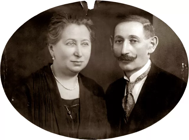 These here are my paternal grandparents, Adela and Moise Springer. The photo was taken in 1935, I think, just before grandmother died. It was taken here, in Brasov.