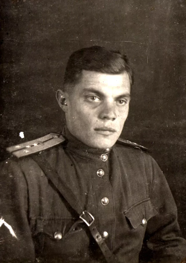 On 5 October 1940 I was recruited to the army. I served in Porkhov town near Pskov [about 400 km northwest of Moscow]. In six months I was sent to a military school. At the weekend my whole platoon accompanied me to the station. This happened on 22 June 1941 [the Great Patriotic War started 22 June 1941]. Nobody in our regiment knew that the war began. I took a train to Kalinin [about 200 km north of Moscow]. The train stopped and I came to the platform. I could not grasp what was going on. Somebody was playing an accordion, somebody was crying. I asked somebody, "What's going on?" And they replied, "Soldier, don't you know? It's the war." I was heading to Gorky [about 400 km east of Moscow] tank school.
