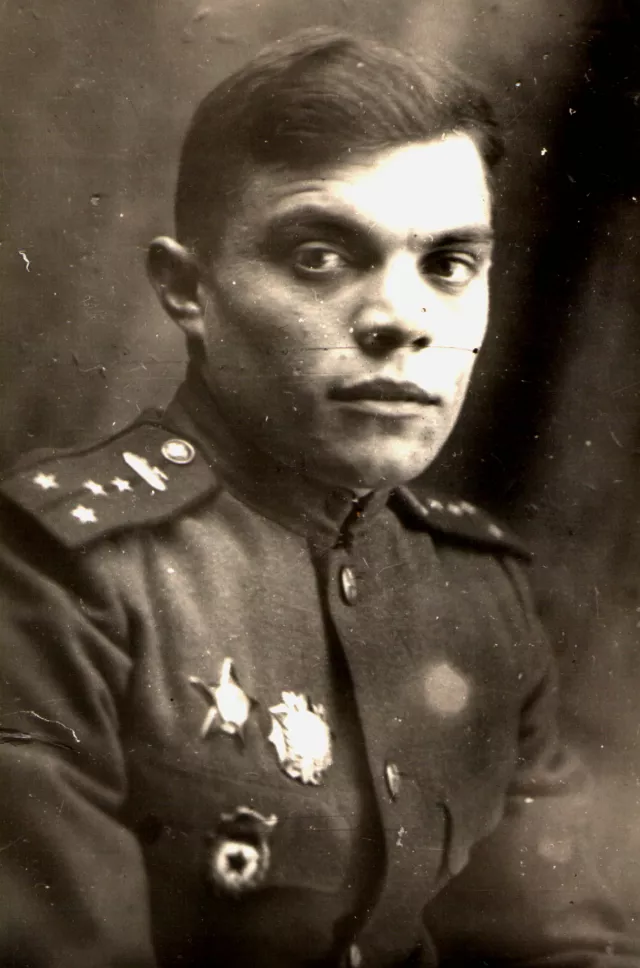 This is me, Moisey Marianovskiy assistant commander of a tank battalion. November 1943, Belarus. I have an Order of Red Star, an Order of Alexandr Nevskiy and a guard badge on my chest.
