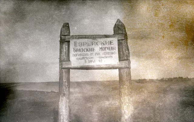 You can see two poles and an inscription in Hebrew indicating that victims of Holocaust from Rovno were buried here, including my parents and my sister, Bella, who were executed by the Nazis on this spot in Sosyonki, a forest outside Rovno. I do not remember who sent it to me.