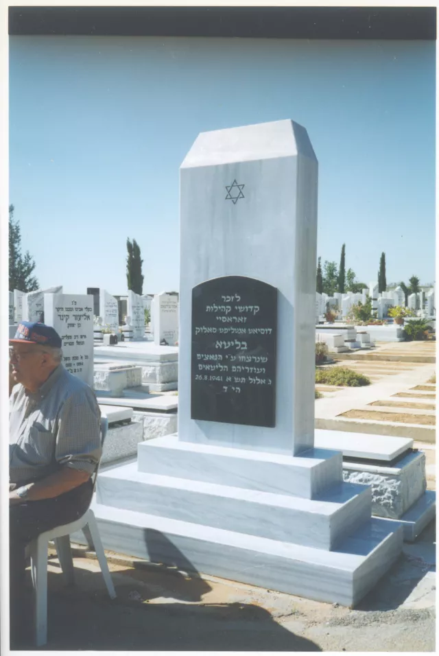 This is a monument to the Jewish people, who perished in Zarasay, erected at the Jewish cemetery in Tel Aviv. I was in Israel in 1998 and took this photo.