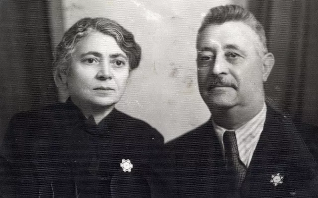 This is a picture of Mordo Iakov, one of my father’s brothers and his wife Estreya Iakova in Pleven in 1943 when Jews were obliged to wear yellow stars.