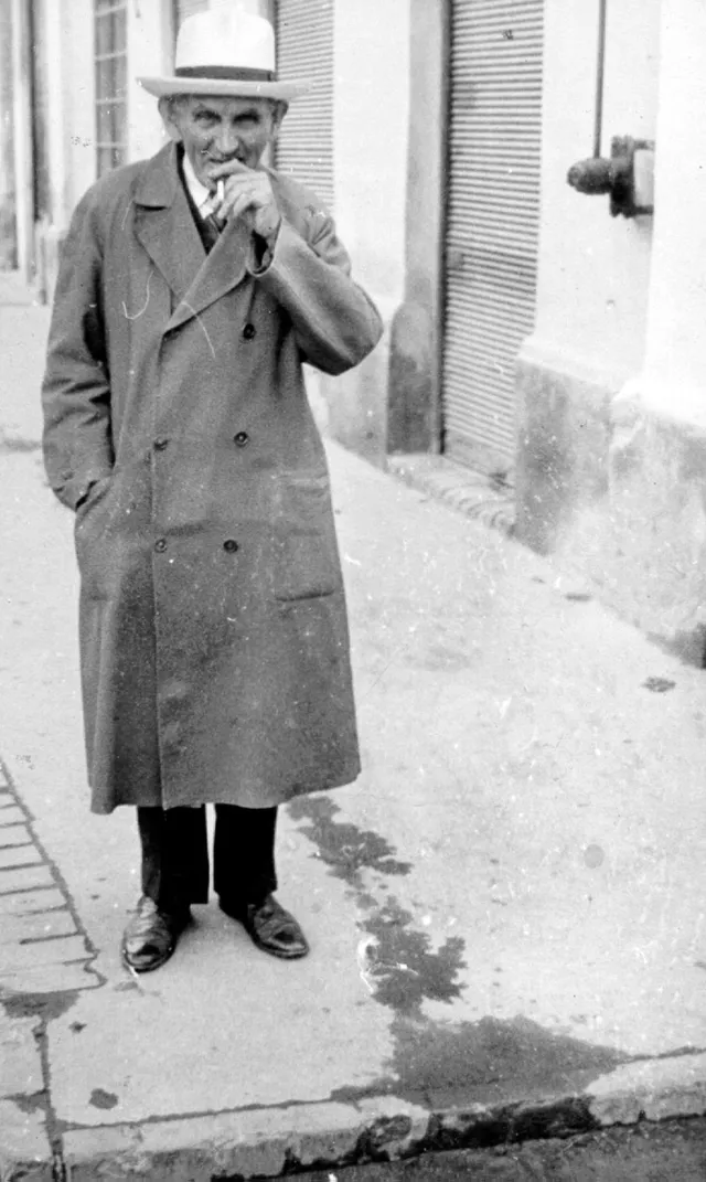 My grandmother’s father Moric Bergel walking down the street in Senta.