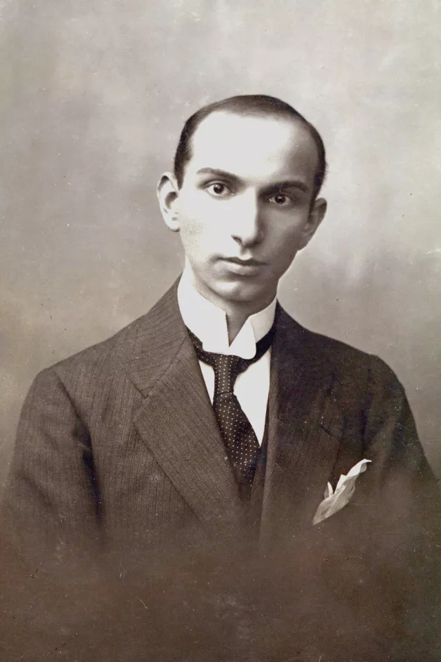 This is my father, Moscu Mizrahy, in 1918. On the back of the photograph there is a dedication for my mother, whom he called 'his best friend.’ The picture was taken in Bucharest.