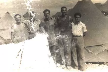 Here I am on Makronisos Island with another four Jews who were members of the ELAS organisation. On my right is Zaharias Cohen from Volos and the rest of us are from Thessaloniki: Albertos Tzachon, me, Salvandor Obadia, Raoul Almosnino.