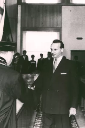 In this photograph taken in 1960, I’m receiving my university degree from the rector of the university.
